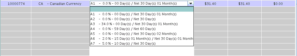 The user will choose a new payment term from the drop-down list by double clicking on the proper one.