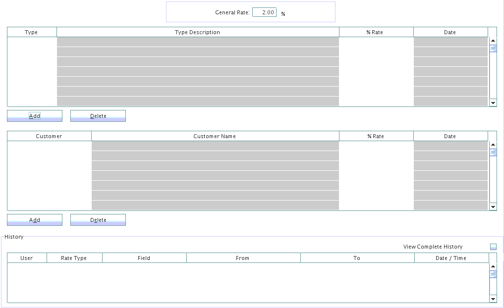 If the user wants to enter a different rate for a specific customer, the use must click on the Add button.