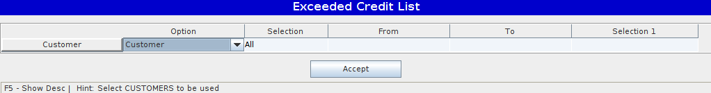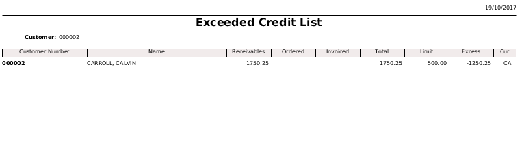 The Exceeded Credit Limit allows the user to print a report to see the Exceeded Credit Limit.