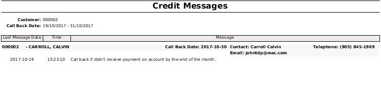 The Credit Messages List allows the user to print all the messages that was entered in the Credit Messages menu.