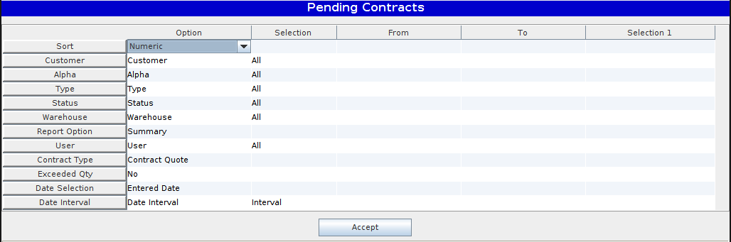 The Outstanding Contracts report allows the user to print all Outstanding Contracts.