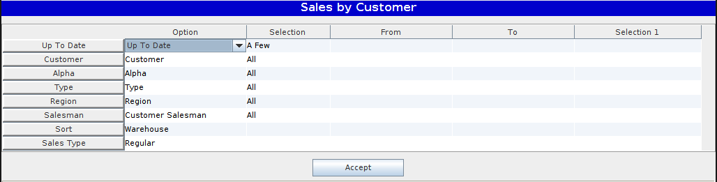 The Sales by Customer report allows the user to print the Sales by Customer with the following options:
