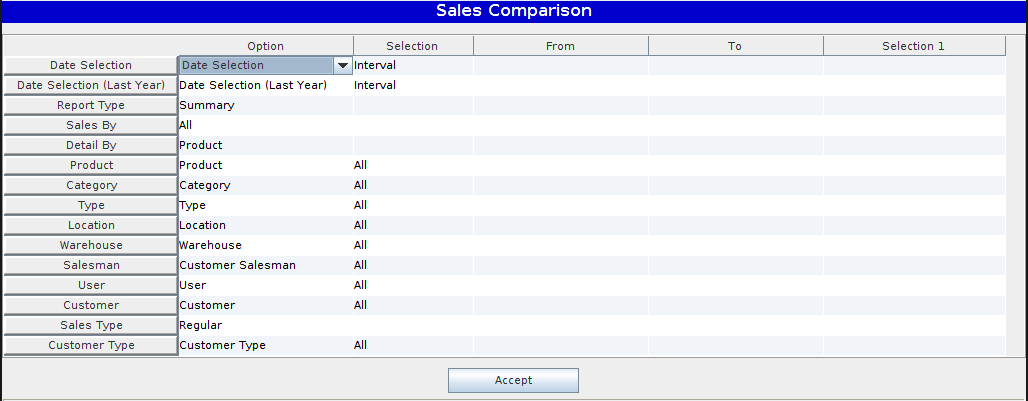 The Sales Comparison report allows the user to print the Sales Comparison with the following options: