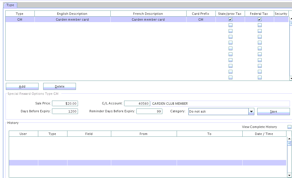 Sale Price: The user must enter the sale price of the Club Card. The sale price depends on your companies policy if they charge for this type of card or not. If your company doesn't charge for this club card, the user must type in zero in this field.