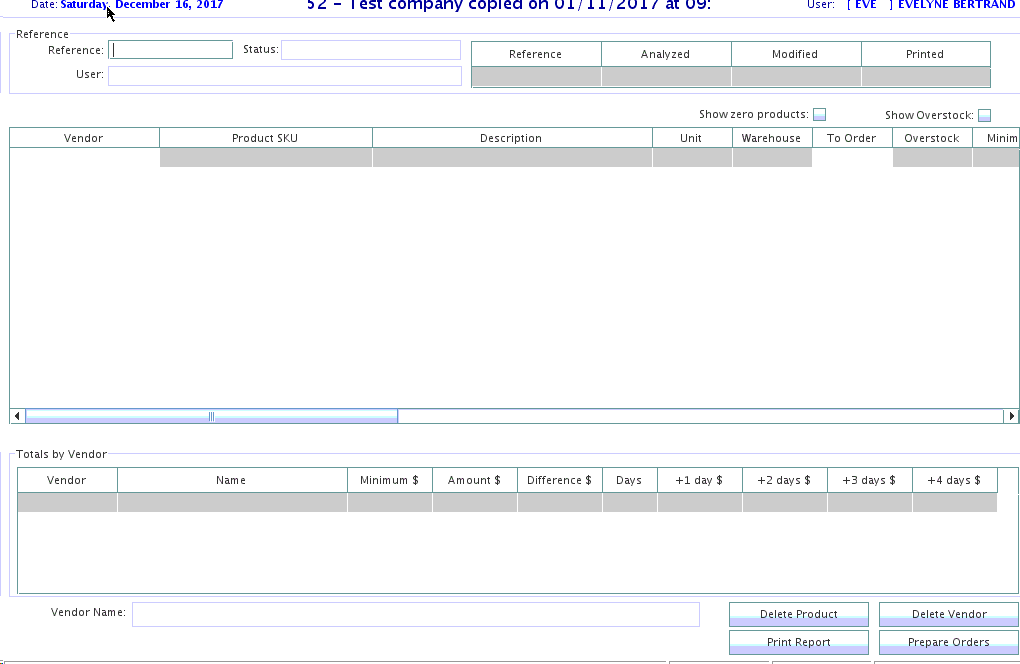 Show zero products: If checked, the system will show all products that can be ordered from the selected vendors - even if there is no suggested quantity to be order by the system.