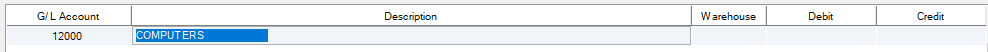 Warehouse: The use must choose the warehouse to be affected by this journal entry by using the scroll-down list or can just press enter to accept the warehouse displayed.