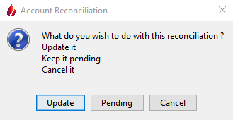 When the user is completed with the reconciliation, they can press F2 to end ad the system will pop-up the following question: