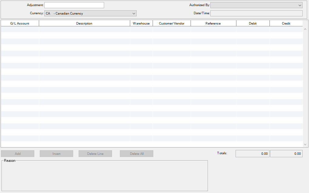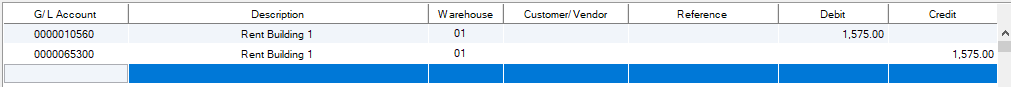Once the header is entered, the user must press the Add button to start entering the journal entry template or if you pressed enter after each field in the header, it will bring you automatically to GL account. The user might have to double click on the field detail called GL Account