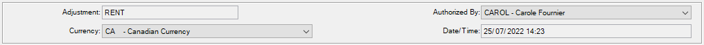 Adjustment: The user must create an adjustment name for this template. Or can recall an existent template by typing the adjustment name or can press F1 to perform a search to find existing template. This field is 10 digits and it is alphanumerical. For this example, the adjustment name will be RENT