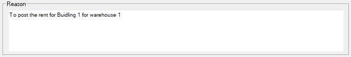 Warehouse: The user must decide which warehouse to apply this rent too. If only have one warehouse, will always be warehouse 1 but for multiple warehouses, the user must choose the warehouse number (i.e. 01, 02 etc).