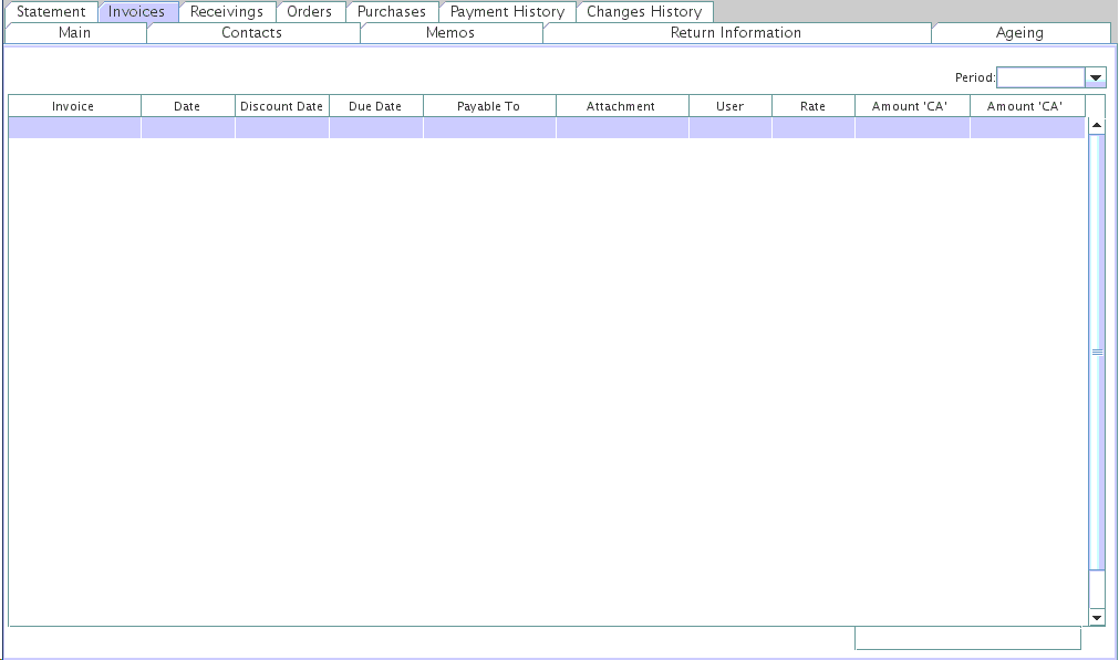 i.e: If the user clicks on Period and selects 201707, the system will display all invoices entered under the selected vendor during the period of July 2017. The system sorts the invoices by their invoice date. Therefore, all invoices displayed on a selected period will be dated for that month.