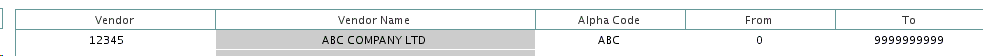 From/To: The user will defined the limit of the P.O. sequence of the vendor. The sequence can start to 0 and go up to 9,999,999,999. This will defined the starting number of the P.O. sequence. Each time a new P.O. number is created for this vendor, the P.O. number will increment by one until it reaches the number entered under the To field. Once reach, the P.O. sequence will start all over again.